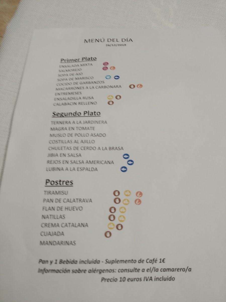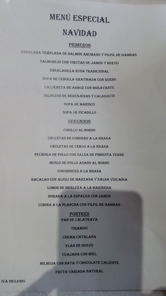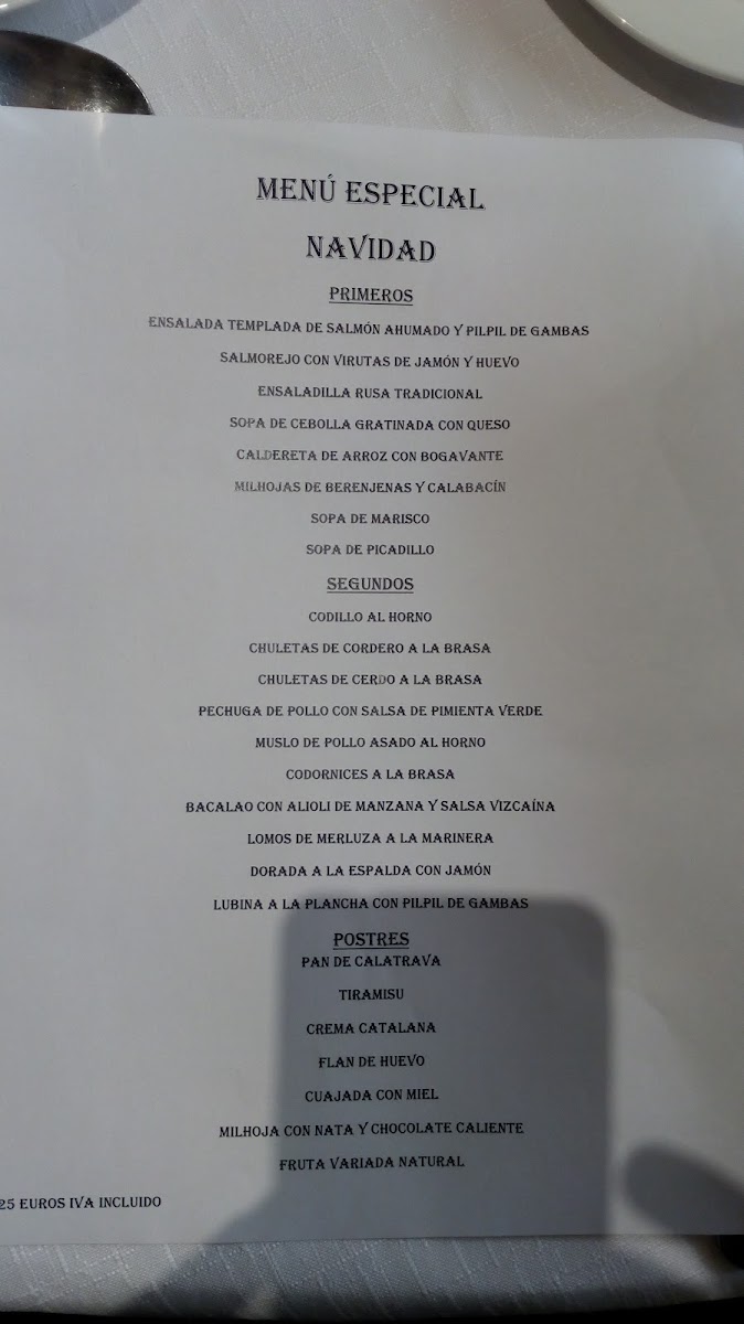 Dishes commonly found on the menu feature both meat and seafood preparations, with items like salmonetes fritos served with cold beer and chuleta de cerdo. The menu also provides typical local specialties including pan de Calatrava and roscón de Reyes Navidad available during seasonal periods. For dessert, options include leche frita and tarta de chocolate among others.